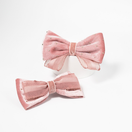 SHOP NOWThese gentle pink bows are made of pastel pink gauze fabric embroidered with flowers, perfect for an elegant look.